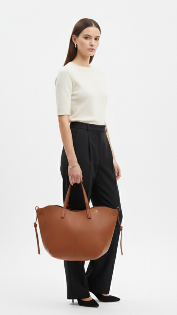 Elevate your everyday style with this spacious tote bag, designed for both elegance and practicality. Crafted from premium vegan leather, it features a roomy main compartment and a removable inner pouch for organized storage of your essentials. Perfect for work, travel, or daily errands.