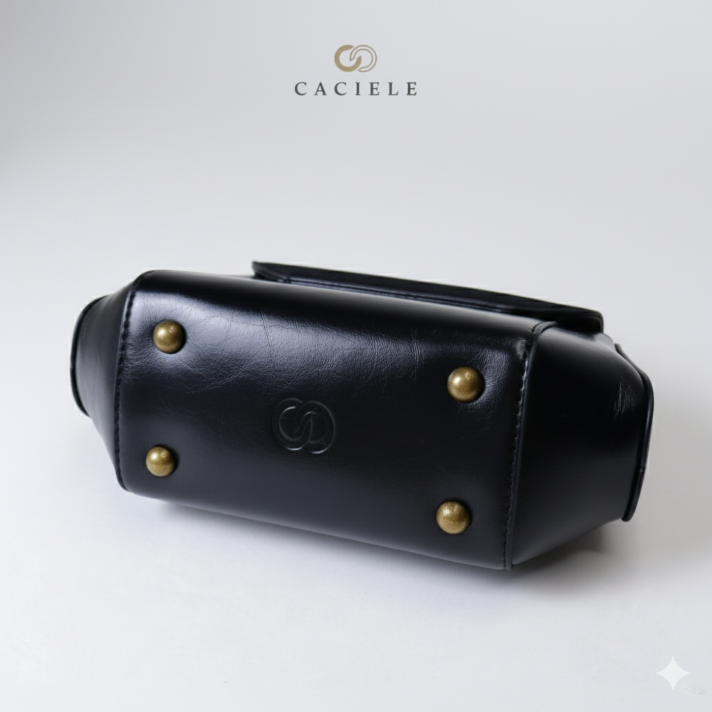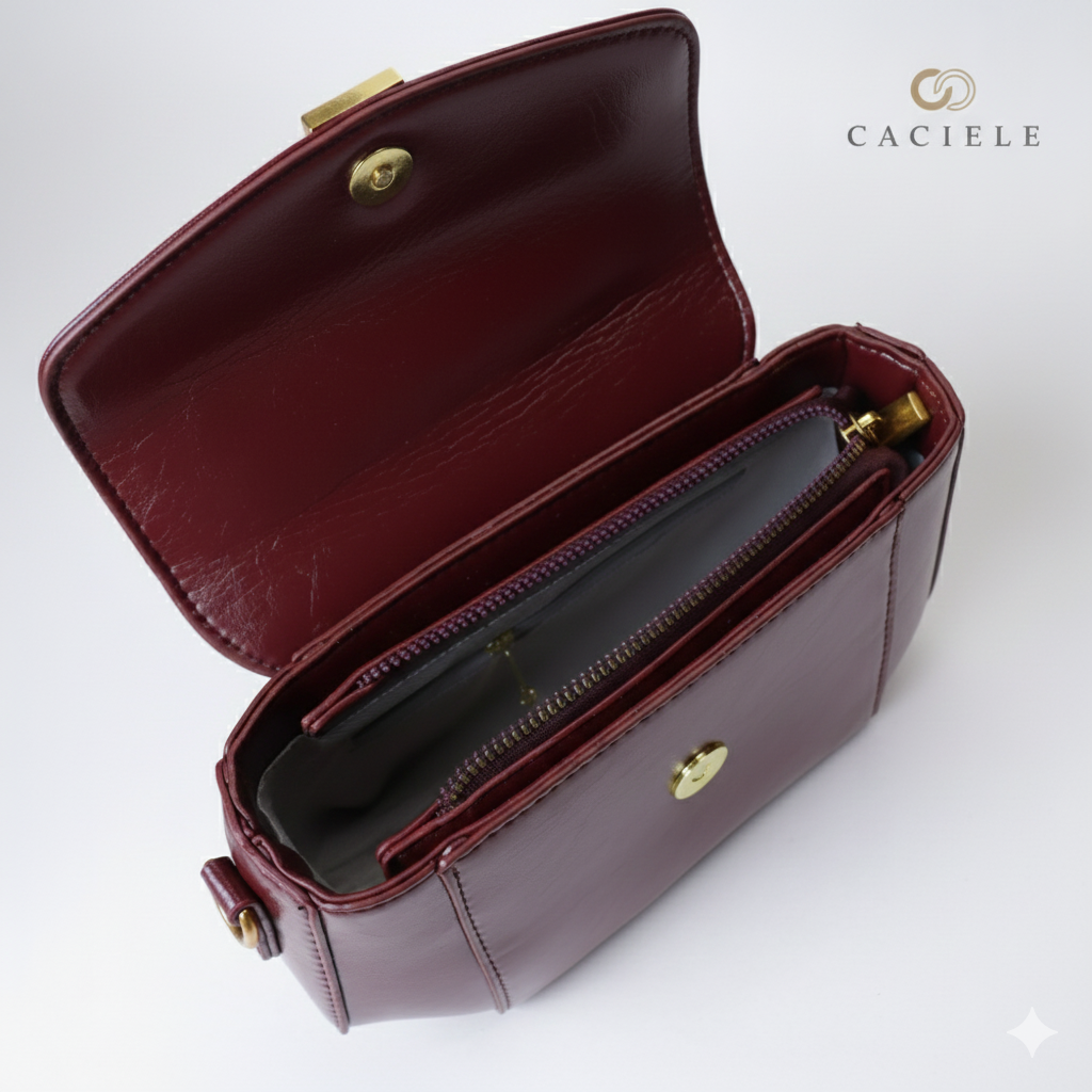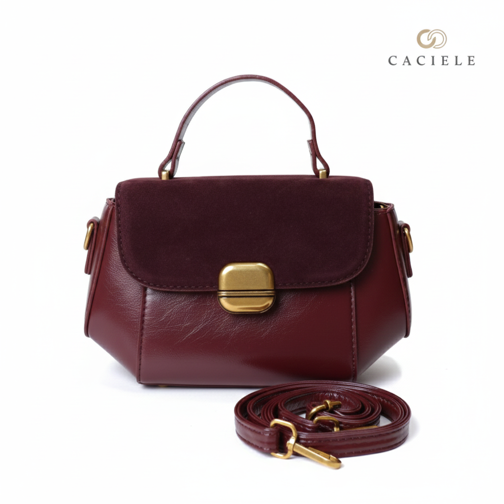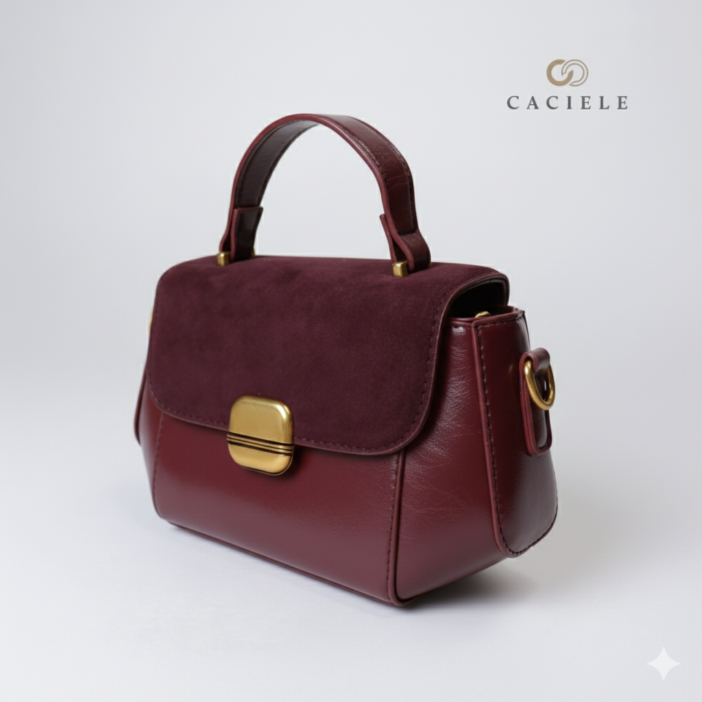 Sila Bag: Expertly crafted from high-quality glossy leather with a soft suede flap.